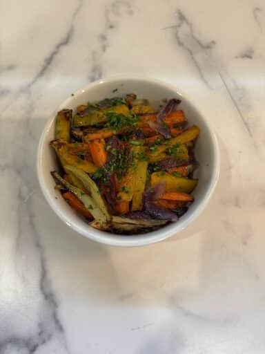 Ingredients: With yellow beets, parsnips, carrots, fennel, red onion